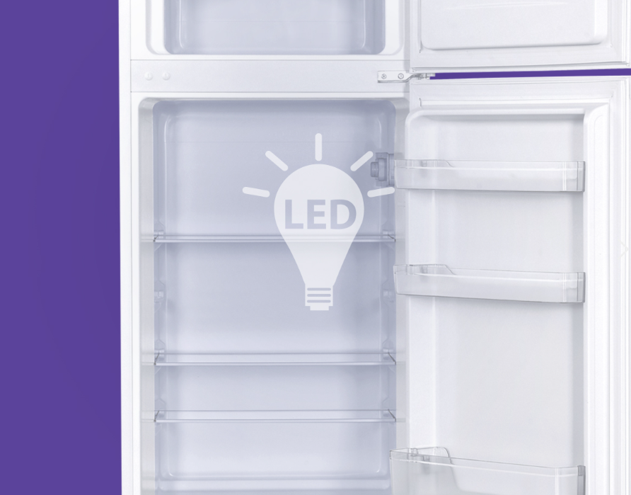 Με χωρητικότητα 206lt, το δίπορτο ψυγείο προσφέρει χαμηλή κατανάλωση ενέργειας χάρη στην ενεργειακή κλάση E, τα εξελιγμένα λάστιχα πόρτας και τον φωτισμό LED, ενώ με τη Χαμηλή Συσσώρευση Πάγου φροντίζει για τη σταθερή θερμοκρασία εντός της συσκευής.