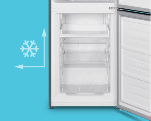 Χάρη στη δυνατότητα αναστροφής της πόρτας, το ψυγείο χωράει οπουδήποτε, καθώς μπορεί να ρυθμιστεί ώστε να ανοίγει προς αριστερά ή προς δεξιά.