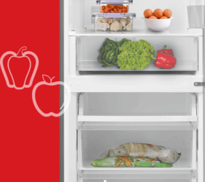 Τα φρούτα και τα λαχανικά διατηρούνται φρέσκα χάρη στο συρτάρι ελέγχου υγρασίας. Ρυθμίστε τον δείκτη και εξασφαλίστε ένα περιβάλλον με περισσότερη υγρασία για τα λαχανικά σας ή με λιγότερη για τα φρούτα σας.